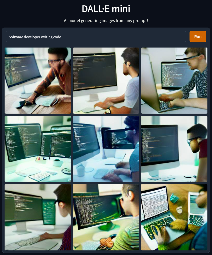 The model might have biases for example check all those software developers who write code, all men (also note that the face are very blurry in contrast to other surfaces in the images) –